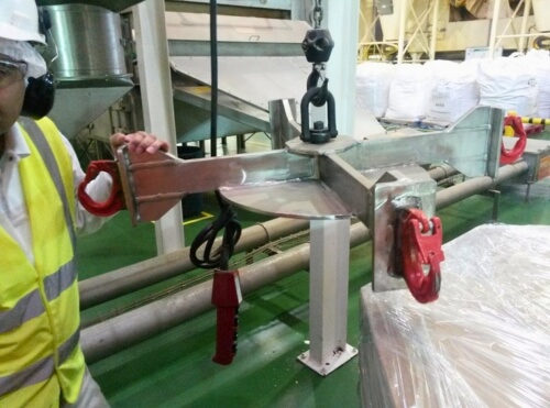 Elementos de izaje, mesas transportadoras y chutes en acero inoxidable.